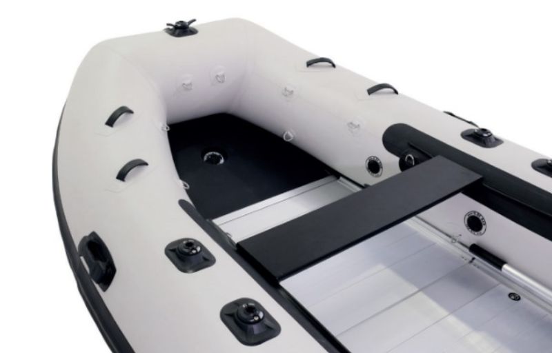 Das Railblaza-System ermöglicht die schnelle, werkzeuglose Montage von Zubehör wie Bimini oder Badeleiter. Eine Bugrolle schützt das Material beim Ankern vor Reibung, Klampe und Halterungen erleichtern die Handhabung. Robustes 0,8 mm PVC mit verschweißten Nähten, ein vollständig PVC-beschichteter Heckspiegel, sowie ein Lenzventil am Heck garantieren Langlebigkeit und einfache Pflege.
